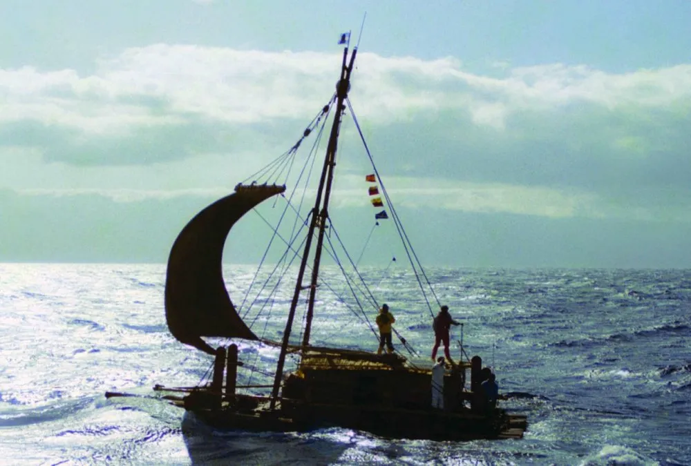 cruzaron el Océano Atlántico en una rudimentaria balsa de troncos a vela, sin timón, y que era una réplica de las utilizadas hace 3500 años. Recorrieron 3200 millas (casi 5930 kilómetros) entre Santa Cruz de Tenerife, España, y La Guaira, Venezuela, y demostraron que los navegantes africanos, conducidos por corrientes marinas, pudieron haber llegado a América 35 siglos antes que Cristóbal Colón.